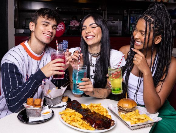Gastronomia Premium: Cardápios assinados pelo Johnny Rockets, com petiscos e bebidas à vontade.